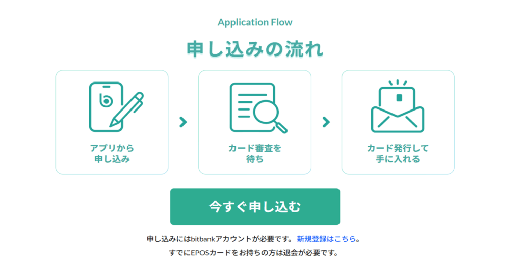 エポスクリプトカードfor bitbankの申し込みから利用するまでの流れは以下の通りです。