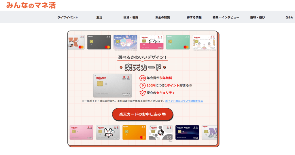 ユーザーのライフスタイルに合わせて様々な種類の中から選べるのも楽天カードの魅力のひとつです。